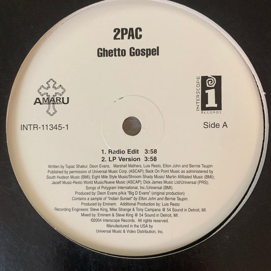 2pac “Ghetto Gospel” 5 Version 12inch Vinyl