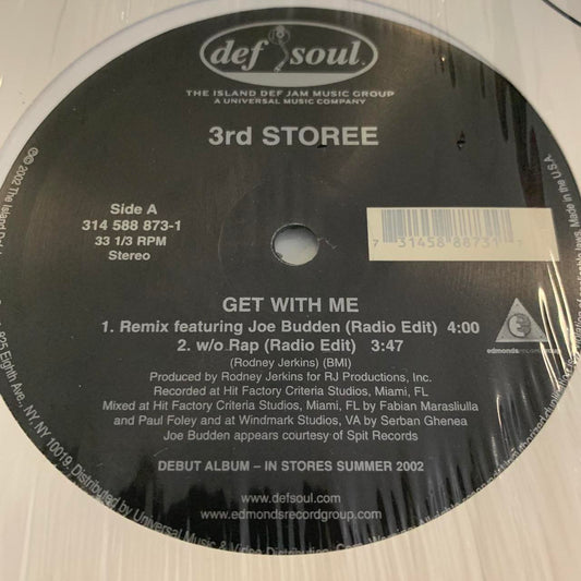 3rd Storee “Get With Me” 4 Version 12inch Vinyl, Featuring Remix with Joe Budden, Rap Radio Edit, Acapella and Instrumentals