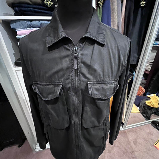 Stone Island Black Garment Dyed Over-shirt Size XL with Logo Badge
