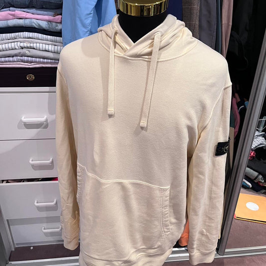 Stone Island 100% Cotton Yellow Fleece Hoodie Size XL with Logo Badge