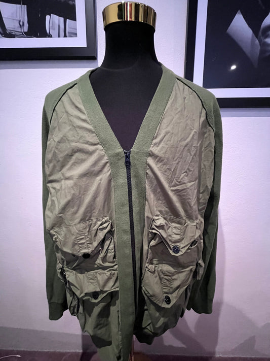 Stone Island Green Waffle Cardigan Size XL with Logo Badge, beautiful piece from SS21 in primo condition like new