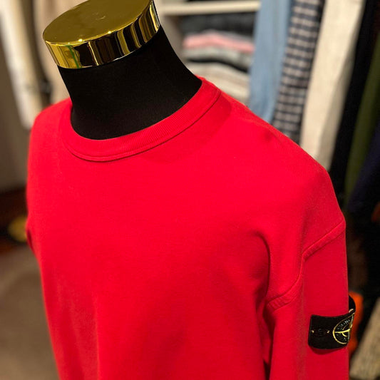 Stone Island Red 100% Cotton Fleece Sweater Size XL with Logo Badge