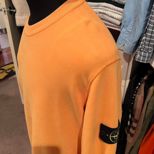 Stone Island Orange 100% Cotton Fleece Sweater Size XL