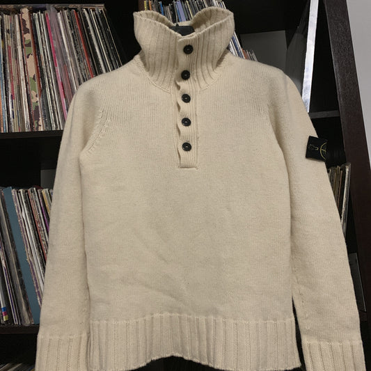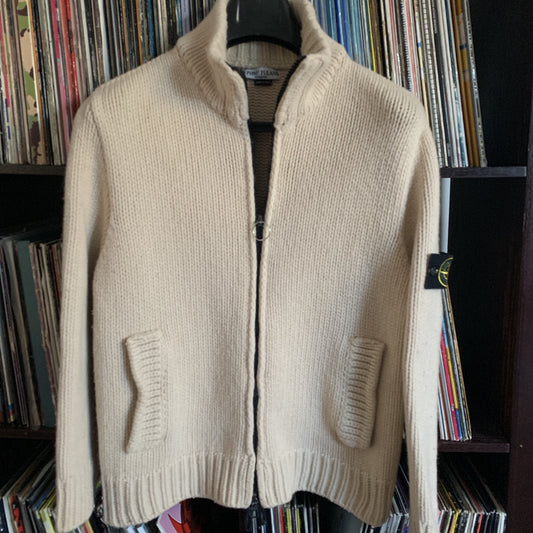 Stone Island Vintage Cream Thick Lambs Wool Zip Up Knit AW03, Size L