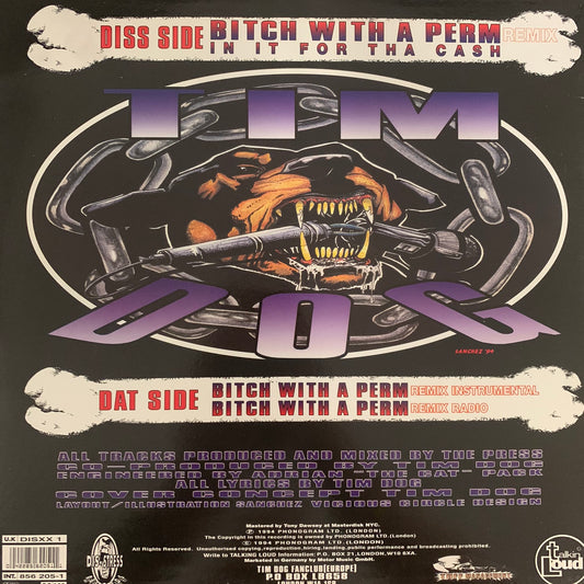 Tim Dog “Bitch With A Perm” 3 Track 12inch Vinyl, Featuring 'In It For The Cash' Remix, Radio, Instrumental