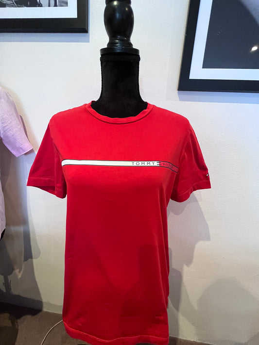 Tommy Hilfiger 100% Cotton Women’s Red Logo Print Tee Size Medium