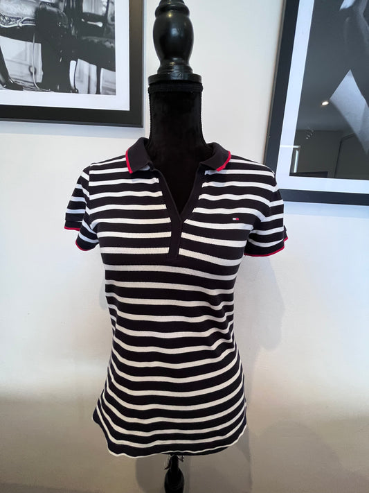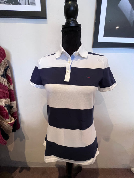 Tommy Hilfiger 100% Cotton Women’s Blue White Stripe Polo Shirt Size M