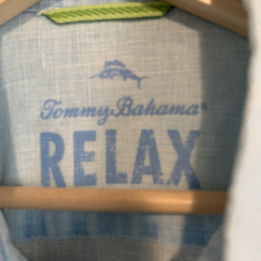 Tommy Bahama Linen Shirt Light Sky Blue Fits Medium to Large
