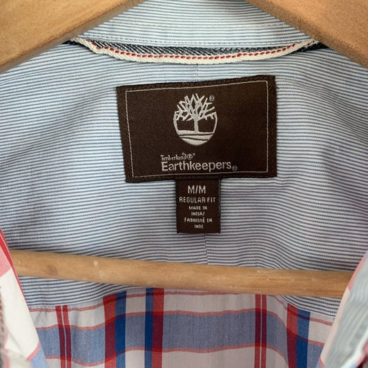 Timberland Earthkeepers Regular Fit Blue White Red Check Shirt Size Medium