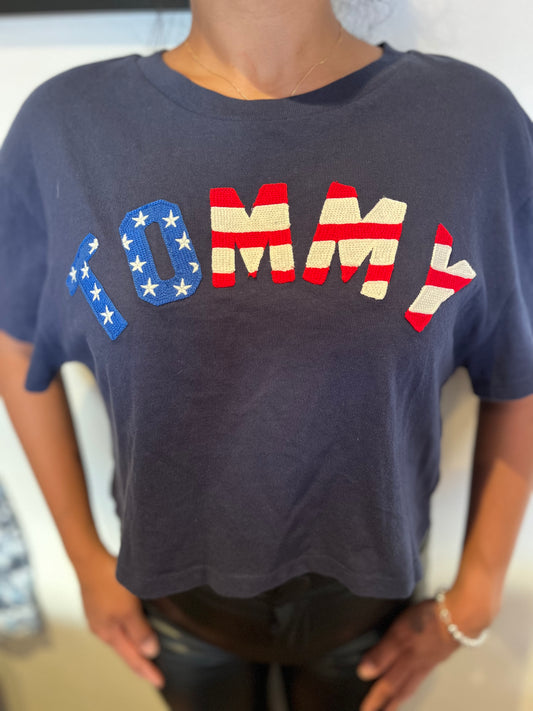 Tommy Hilfiger Tommy Girl Logo Embroidered Blue Crop Top Size Medium