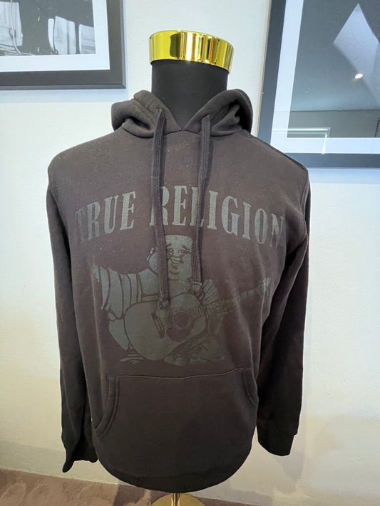 True Religion 100% Cotton Logo Print Black Hoodie Size M BNWT
