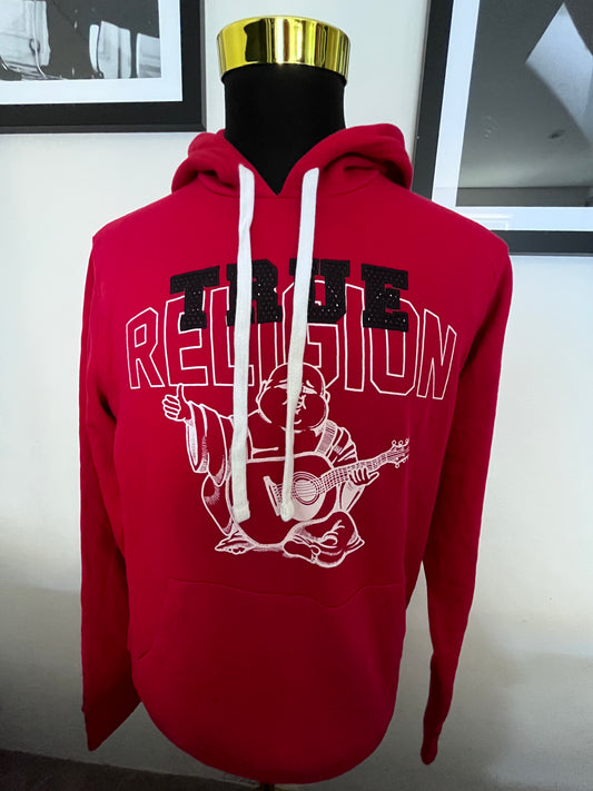 True Religion 100% Cotton Logo Embroidered Red Hoodie Size M BNWT