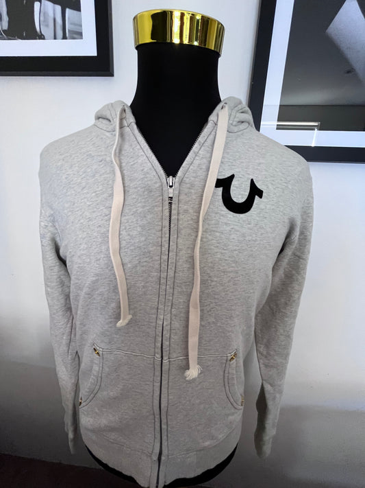 True Religion 100% Cotton Logo Embroidered Grey Hoodie Size M
