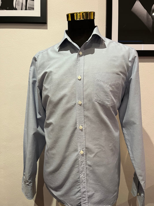 Z Zegna 100% Cotton Drop 8 Fit Blue Shirt Size Large 44/17.5