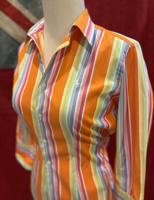 Ralph Lauren Women’s 100% Cotton Orange Striped Shirt Size 2