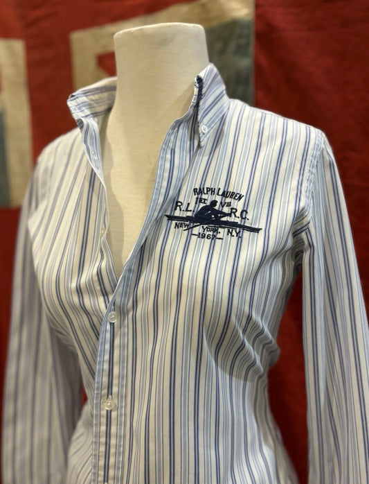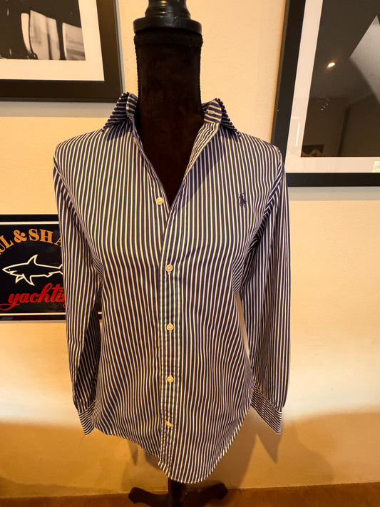 Ralph Lauren Women’s 100% Cotton Blue Striped Chest Logo Shirt Size 6