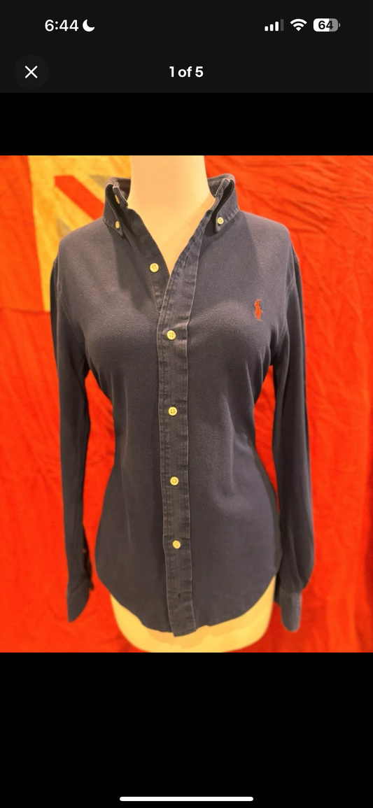 Ralph Lauren Women’s 100% Cotton Blue Oxford Shirt Size 4 Slim Fit
