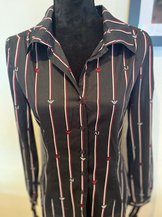 Armani AJ 100% Cotton Women’s Black Stripe Shirt Size 6