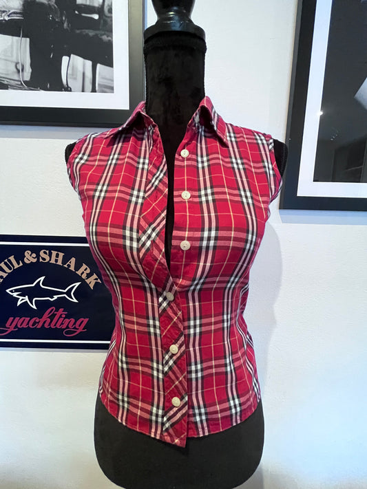 Burberry 100% Cotton Women’s Sleeveless Red Check Shirt Size Small