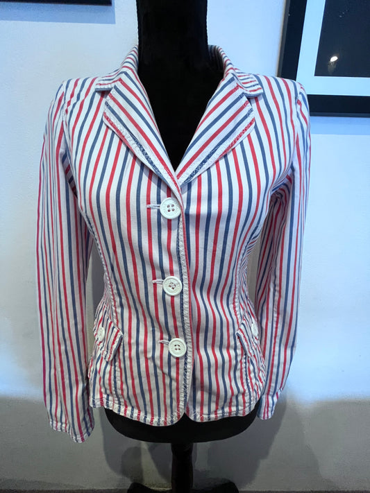 Armani 100% Cotton Women’s Pin Stripe Fitted Jacket Size 40 Small Slim Fit