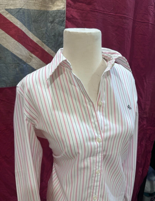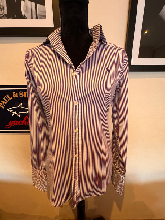 Ralph Lauren Women’s 100% Cotton Purple White Striped Shirt Slim Fit Size 12