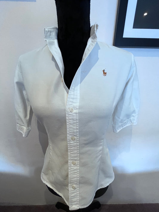 Ralph Lauren Women’s 100% Cotton White Short Sleeve Shirt Size 4 Slim Fit