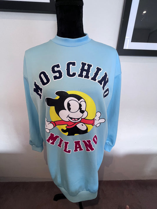 Moschino Couture Logo Print Powder Blue Dress Size XS Brand New With Tags