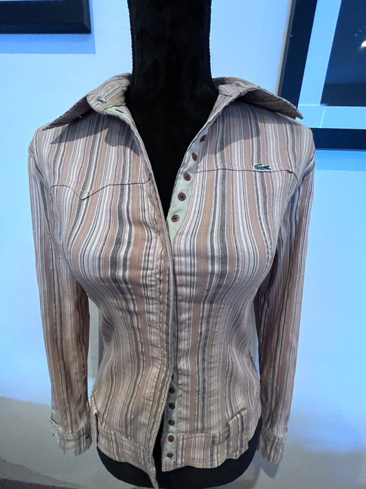 Lacoste 100% Cotton Women’s Brown Stripe Shirt Size Small