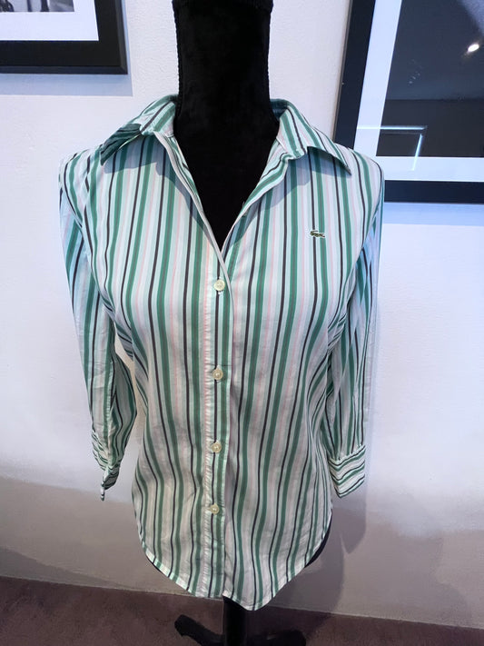 Lacoste 100% Cotton Women’s Pink Green Stripe Shirt Size 40 Small