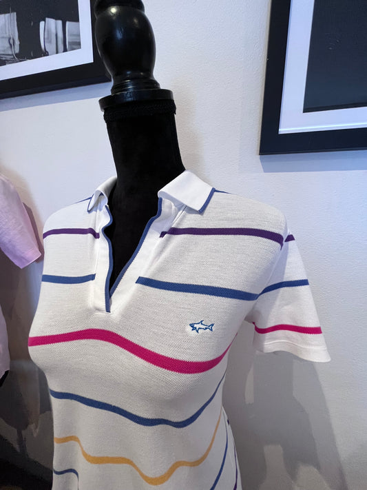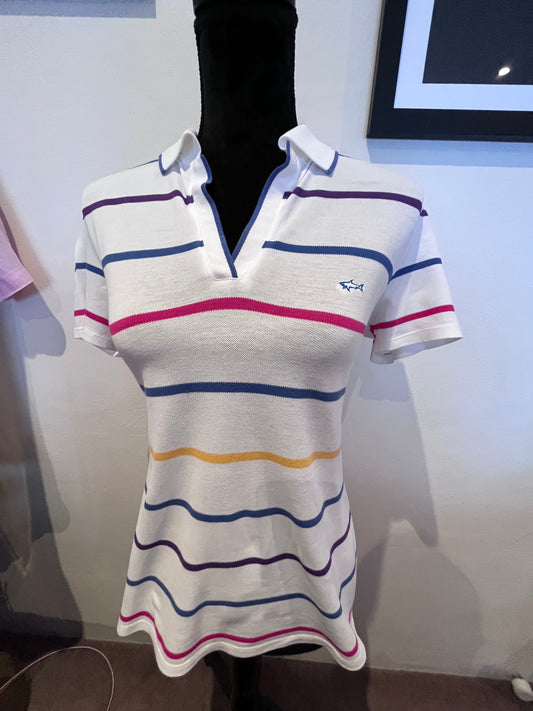 Paul & Shark Women’s 100% Cotton White Striped Polo Shirt Size L Made In Italy