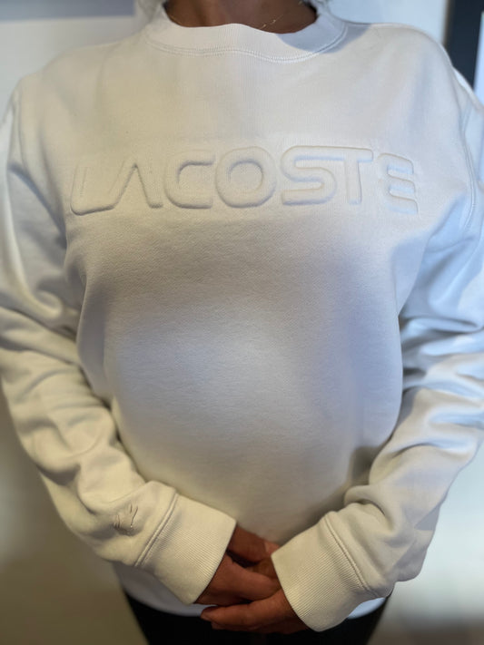 Lacoste Ladies Sweater White Size 6 Raised Chest Logo & Arm Crocodile Badge