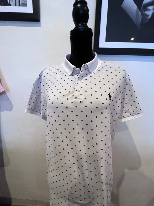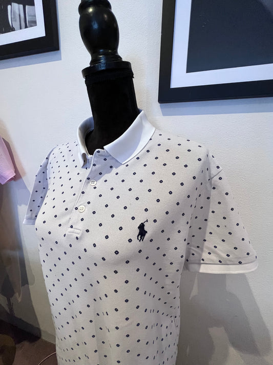 Ralph Lauren 100% Cotton Women’s White Pattern Polo Shirt Size Large