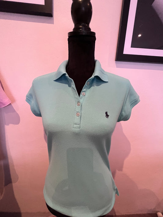 Ralph Lauren 100% Cotton Women’s Blue Logo Embroidered Polo Shirt Size SP