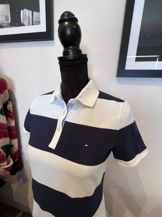 Tommy Hilfiger 100% Cotton Women’s Blue White Stripe Polo Shirt Size M
