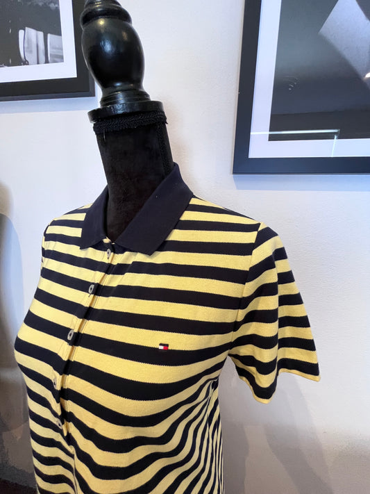 Tommy Hilfiger Tommy Girl 100% Cotton Blue Yellow Stripe Polo Size M