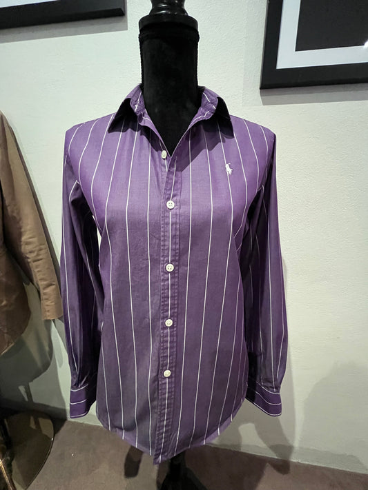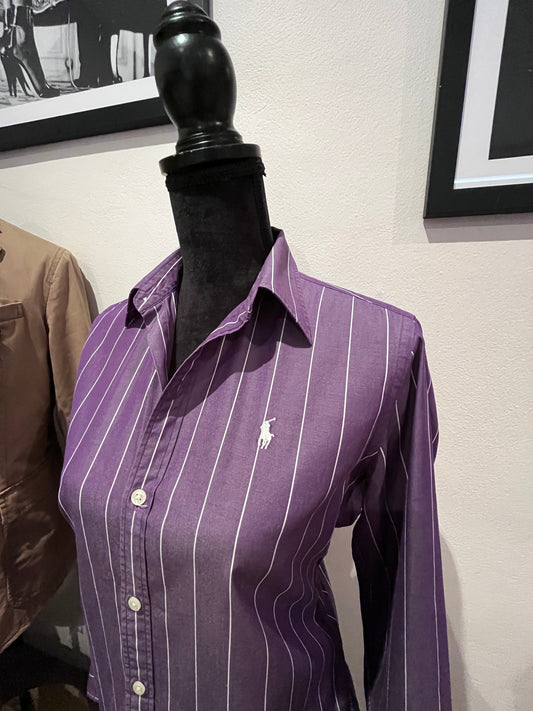 Ralph Lauren Golf Women’s 100% Cotton Purple White Stripe Shirt Size 8