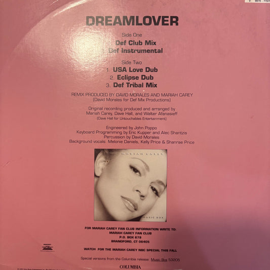 Mariah Carey “Dreamlover” 5 Version 12inch Vinyl Record Includes David Morales Remix