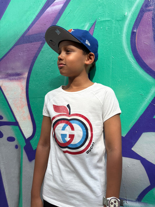 Gucci 100% Cotton White Chest Logo Vintage Tee Kids Size 9-10