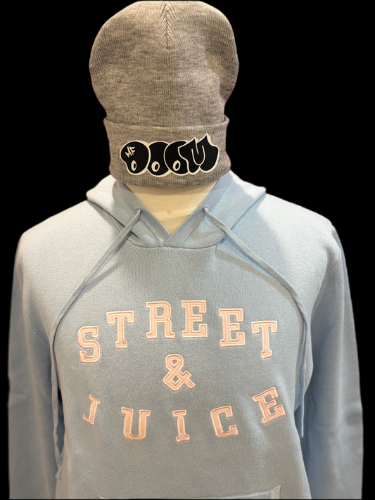 Street & Juice 100% Cotton Knit Pastel Blue Chest Logo Drawer String Hoodie