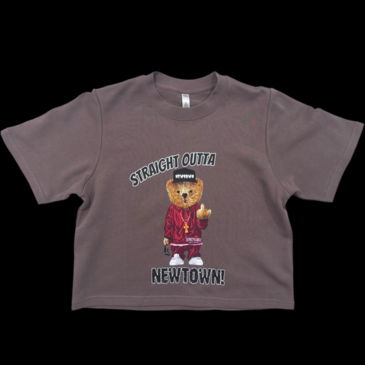 Street & Juice Women’s Straight Outta Newtown’ 100% Cotton Brown Crop Sweater