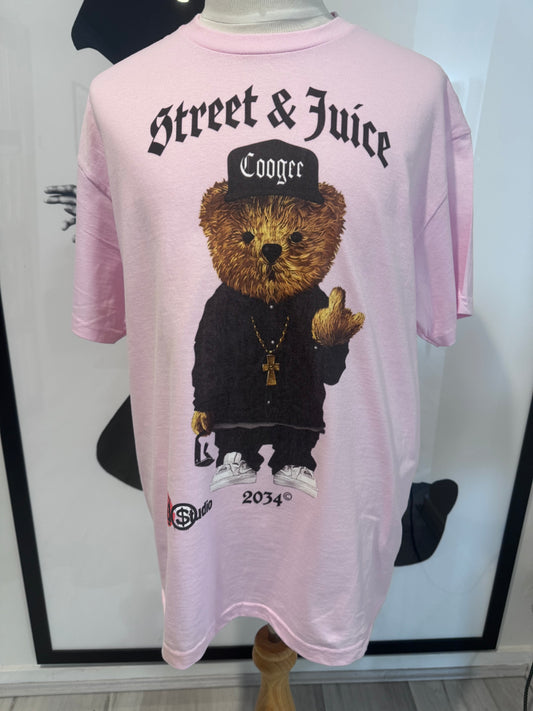 Street & Juice ‘Coogee Bear’ 100% Cotton Pink Chest & Back Logo Tee