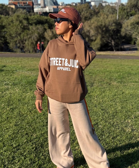 Street & Juice 100% Cotton Brown Chest Logo Drawer String Hoodie