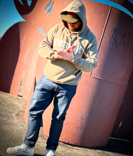 Street & Juice 100% Cotton Khaki Chest Logo Drawer String Hoodie