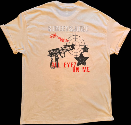 Street & Juice 2pac “All Eyez On Me” 100% Cotton Cream Chest Logo T Shirt