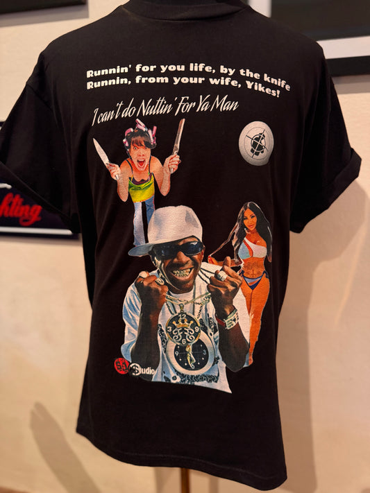 Street & Juice Flavor Flav Public Enemy “Can’t Do Nuttin For Ya Man” 100% Cotton Black Chest Logo T Shirt