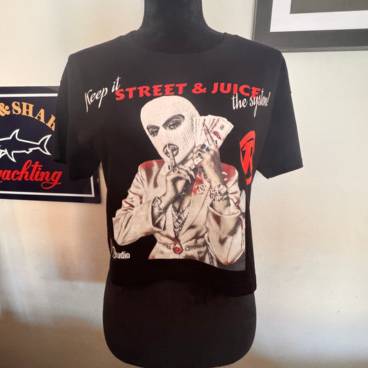 Street & Juice “Cash Girl” Black Crop Top Cotton Women’s Tee