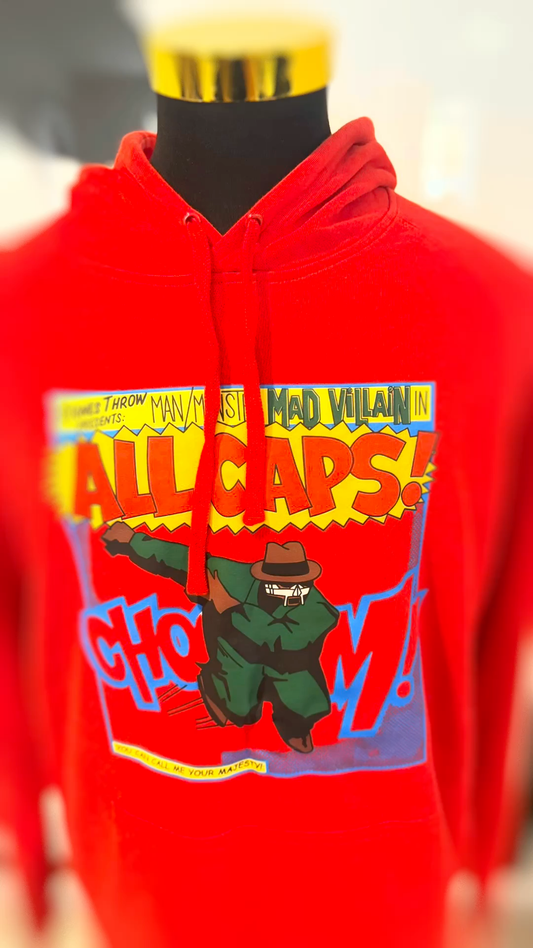 MF DOOM Mad Villain ‘ALL CAPS’ 100% Cotton Red Chest Logo Hoodie
