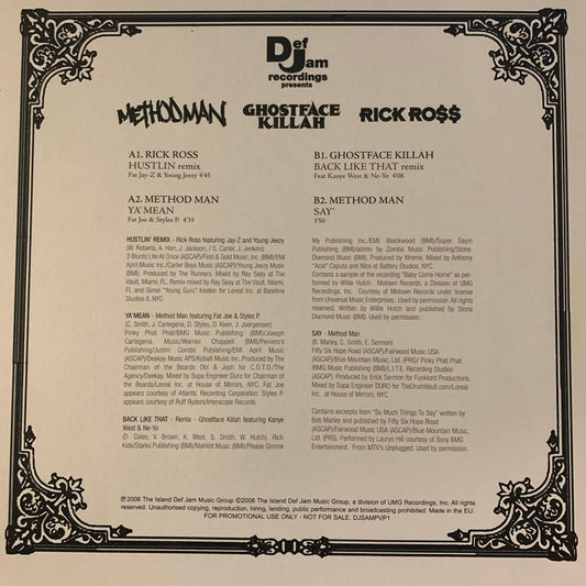 Def Jam Recordings Presents Ghostface Killah, Rick Ross and The Method Man 4 Track 12inch Vinyl