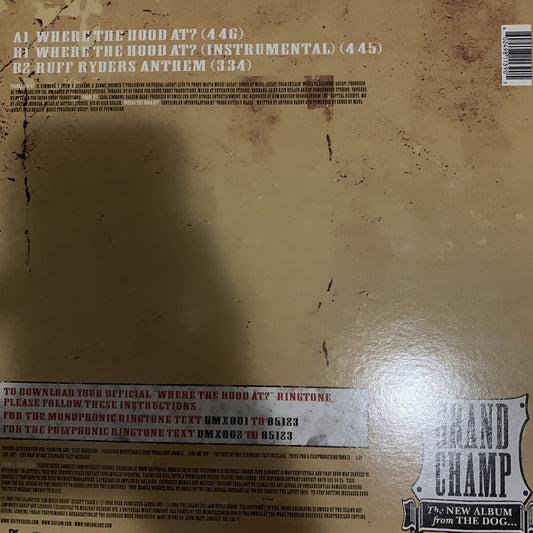 DMX "Where The Hood At" / "Ruff Ryders Anthem" 12 Inch Vinyl