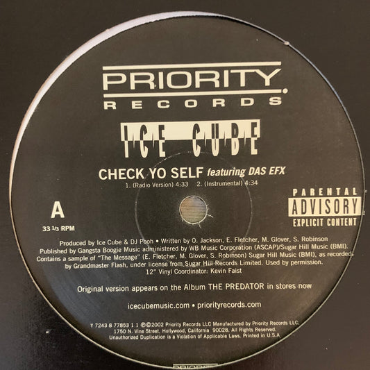 Ice Cube Feat Das EFX “Check Yo Self” 3 Version 12inch Vinyl